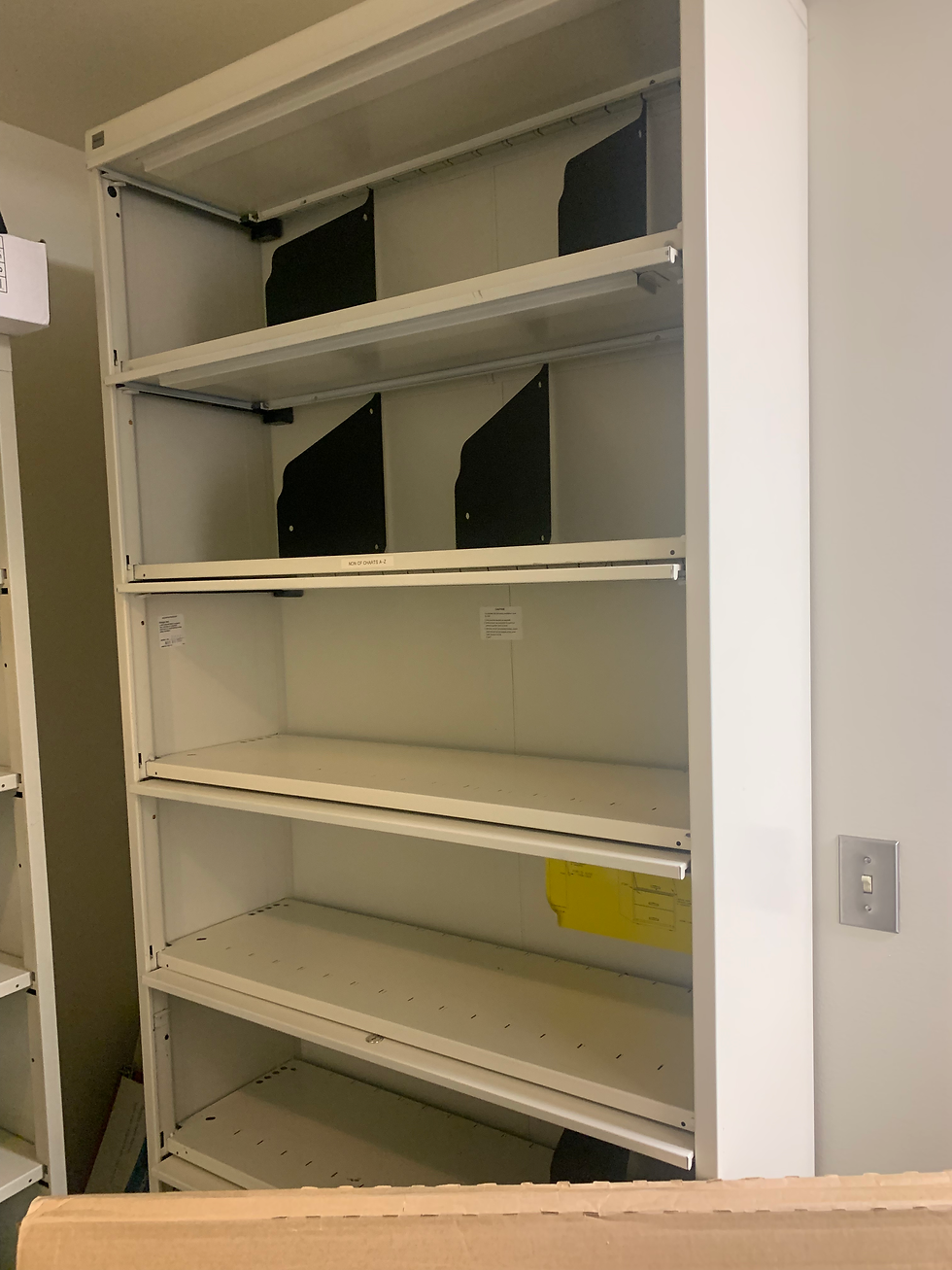 Large metal bookshelf with doors